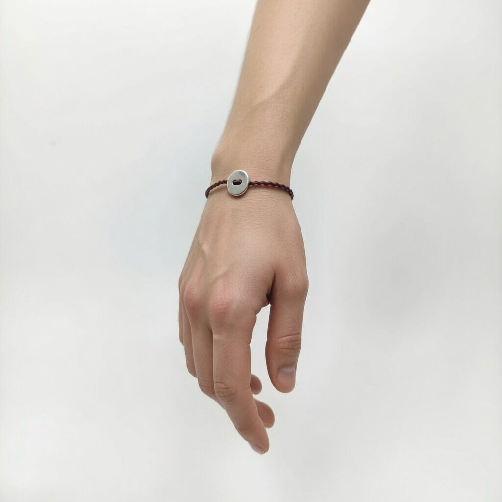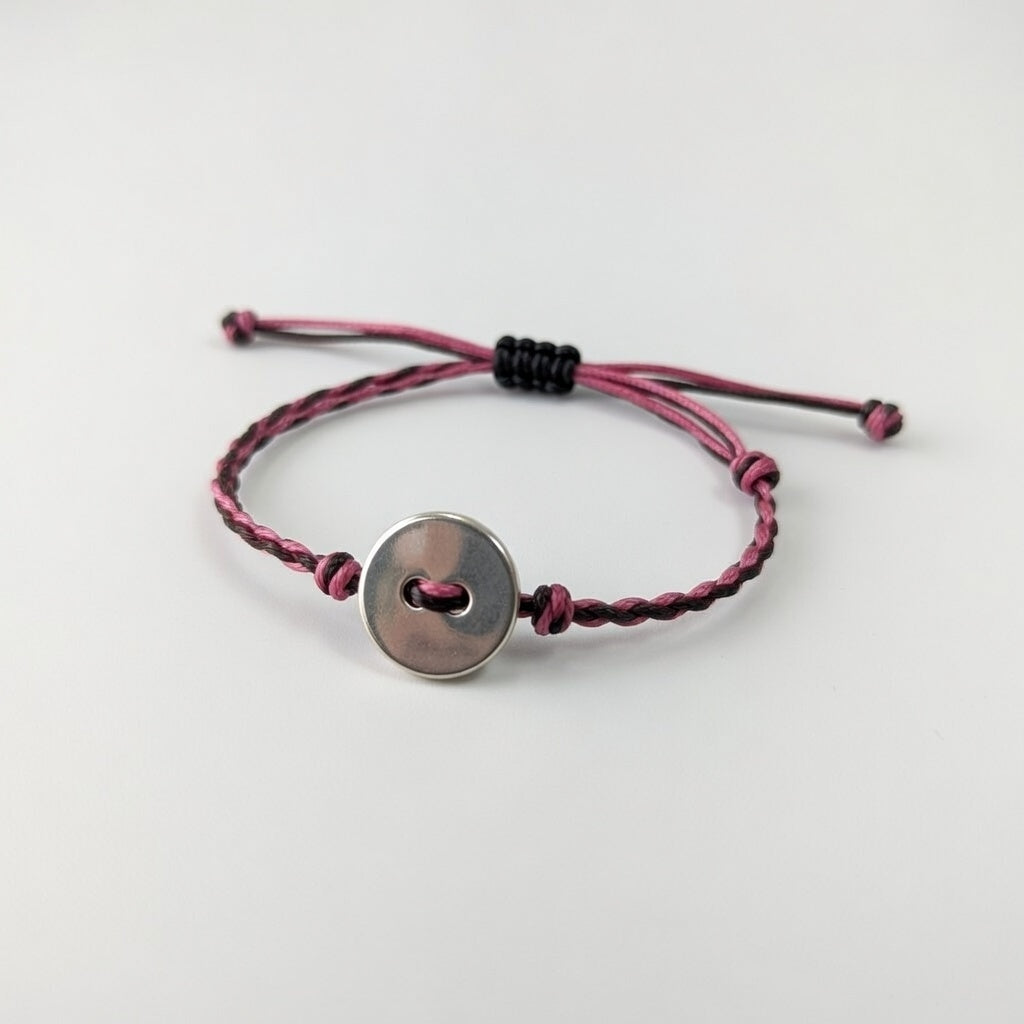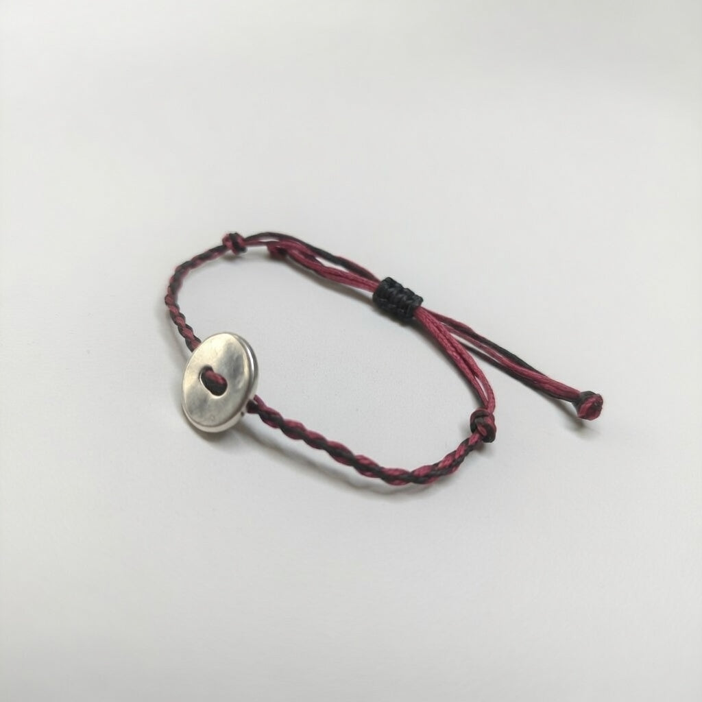 Ένα ευκολοφόρετο λεπτό βραχιόλι που μπορεί να συνδυαστεί με πολλά κοσμήματα. Πλεγμένο με κόκκινο και μαύρο κορδόνι, με ενσωματωμένη ασημί μεταλλική λεπτομέρεια στο κέντρο του.